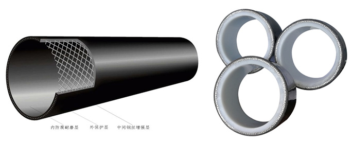管體由內(nèi)到外分別為:內(nèi)芯管、鋼絲增強(qiáng)、熔融體、外保護(hù)層