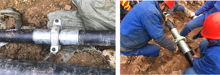 ◆連接形式:通常采用機(jī)械鎖頭卡箍連接形式(哈弧套),通過(guò)兩顆螺絲緊固實(shí)現(xiàn)接頭兩端360°無(wú)差異受力,確保連接可靠;根據(jù)工況,也可選擇如鎖頭活法蘭/兩半式法蘭等連接形式。